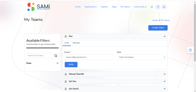 A subscriber is able to invite a new member (New Developer) to the SAMi portal by sending an invitation from